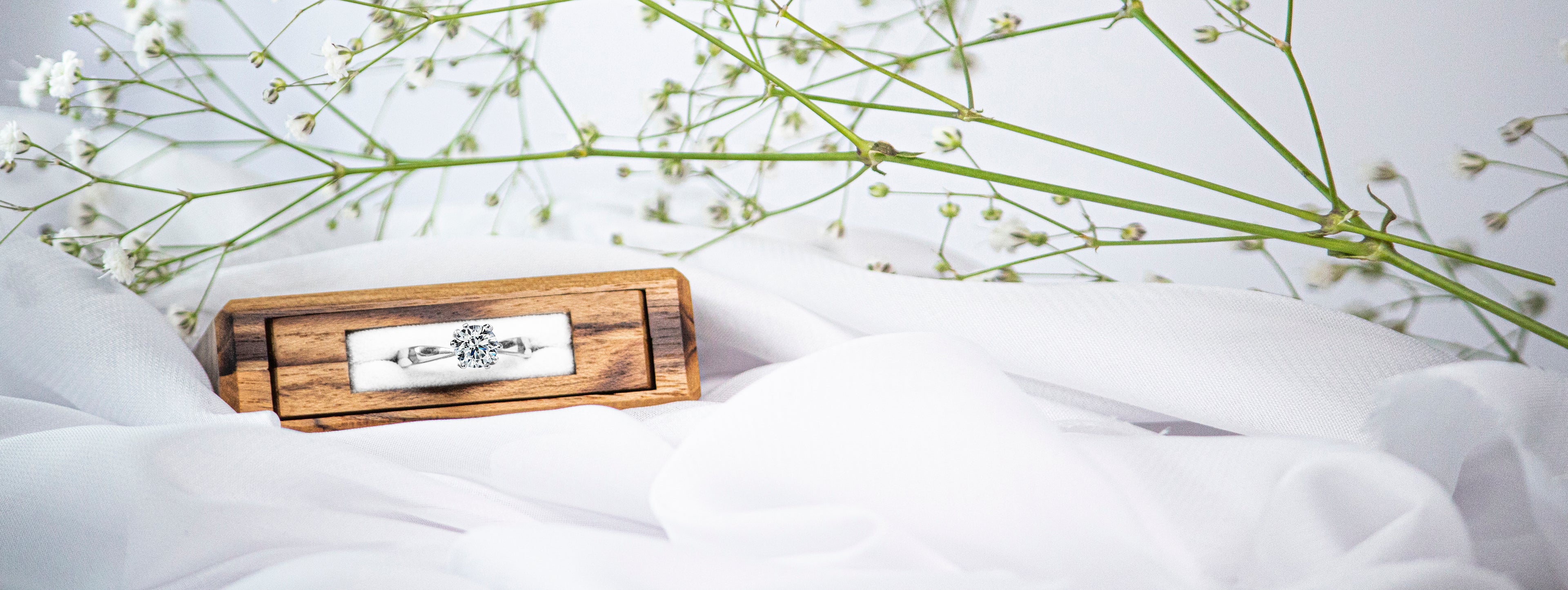 Utilizando la madera, para mostrar la belleza natural de la vida y la importancia de conectarnos con la naturaleza. Cada estuche está hecho a mano con el mayor cuidado y atención al detalle, con un sistema oculto de imanes para asegurarnos de que tu anillo está protegido.