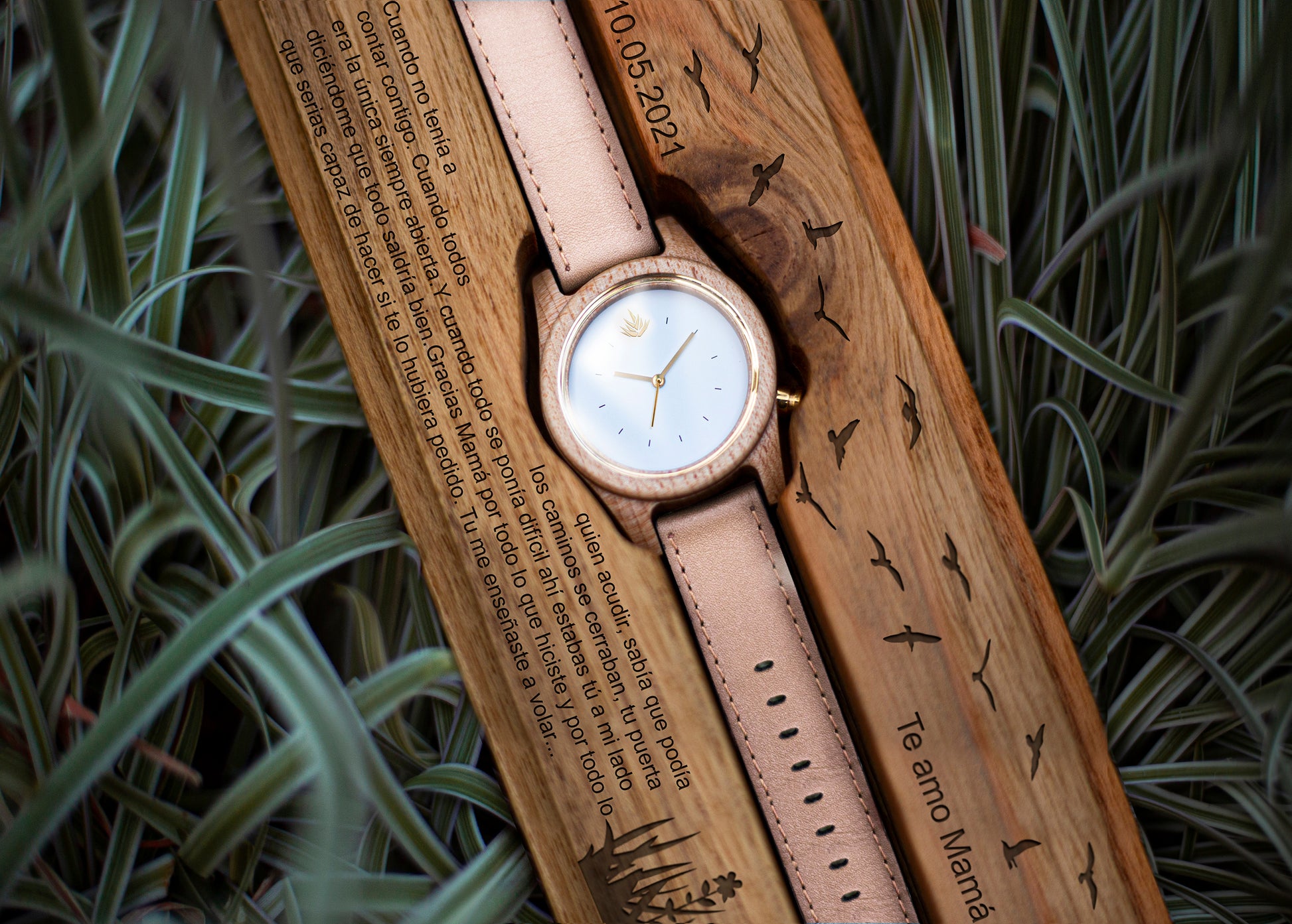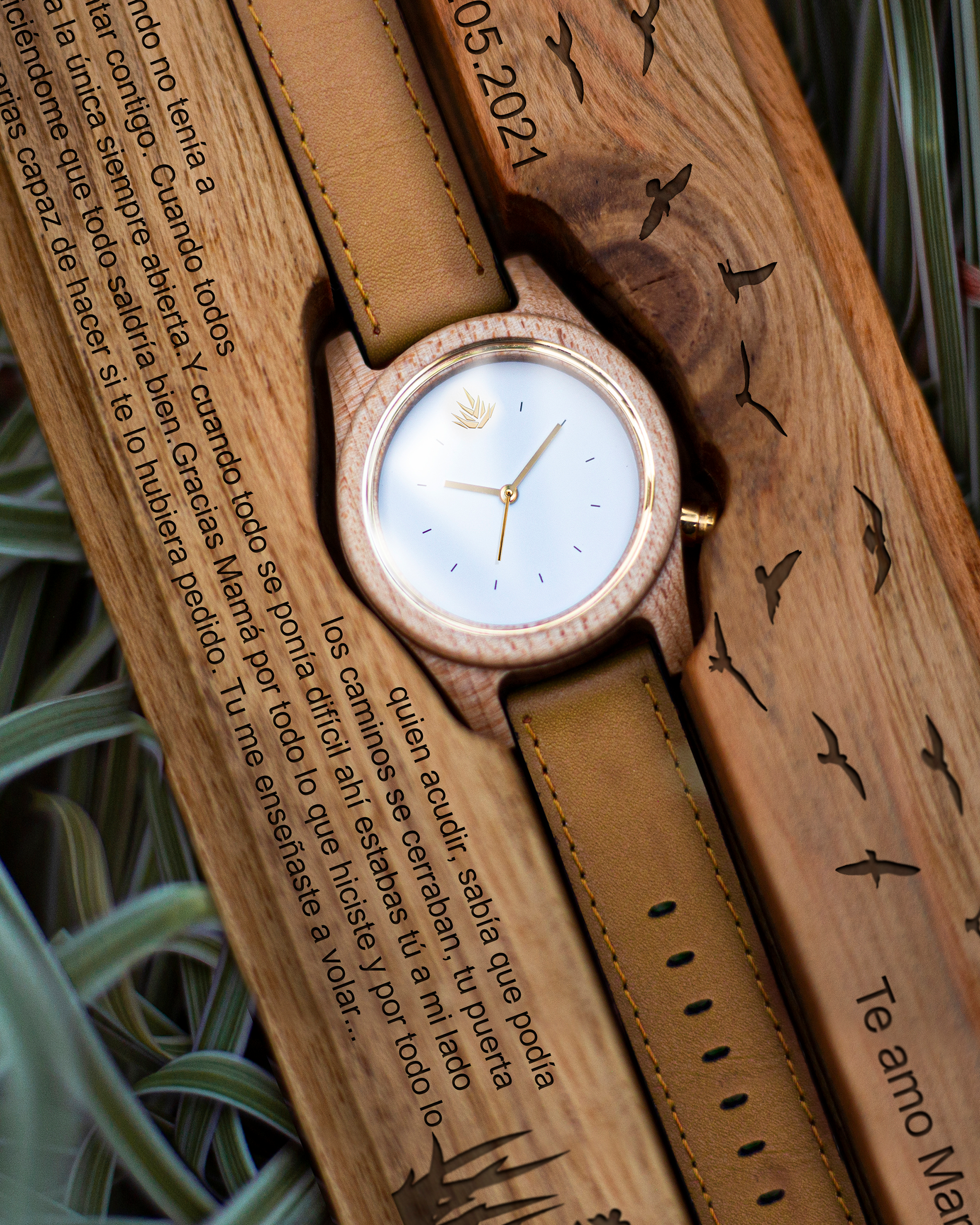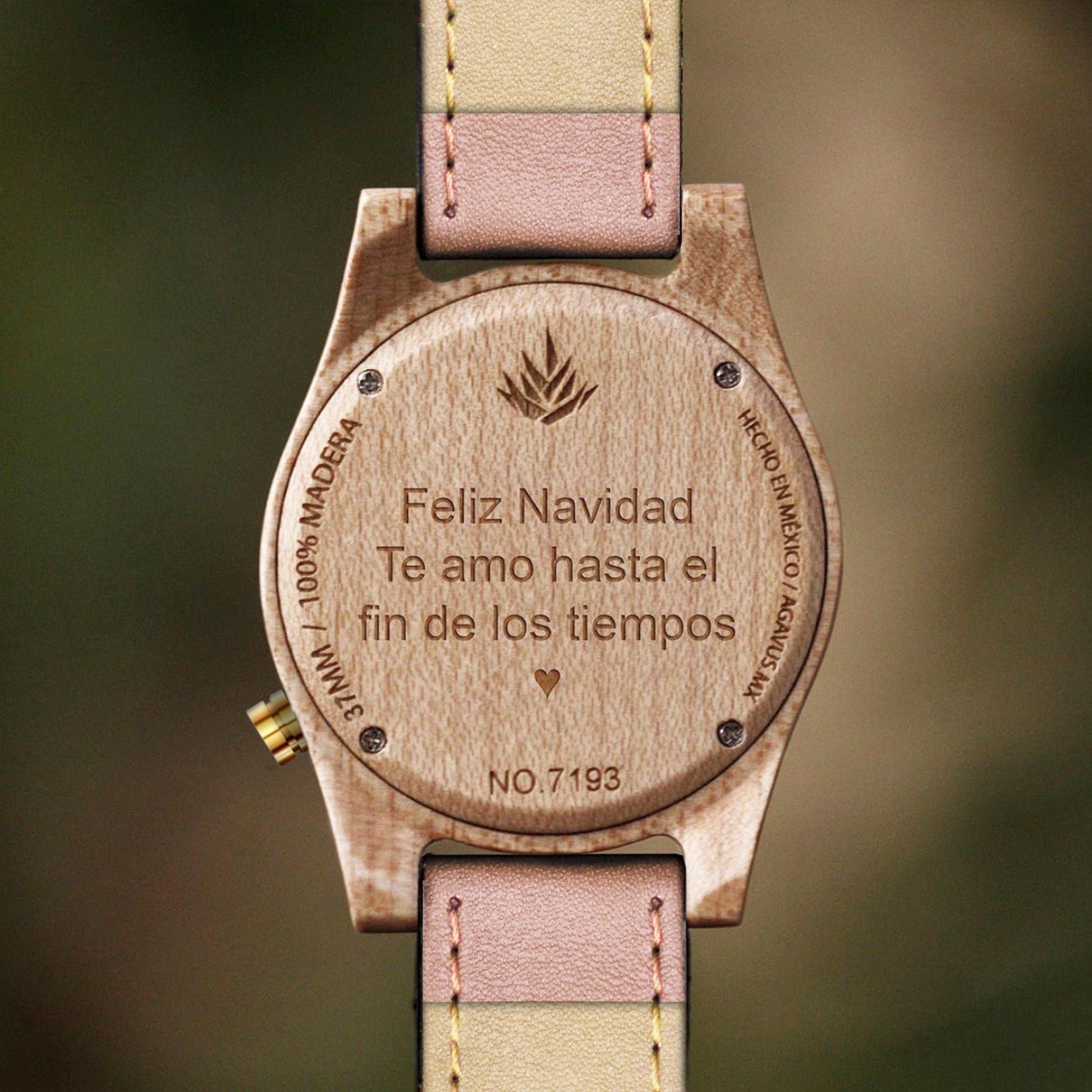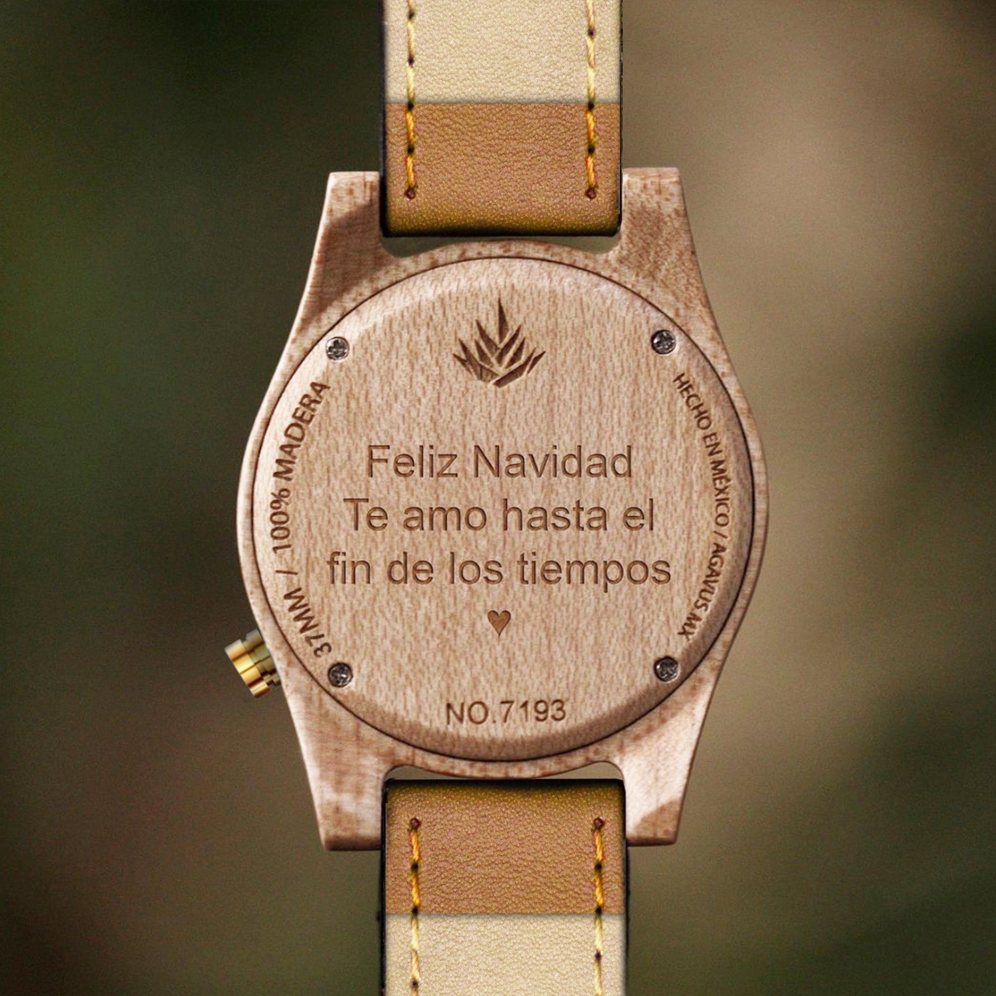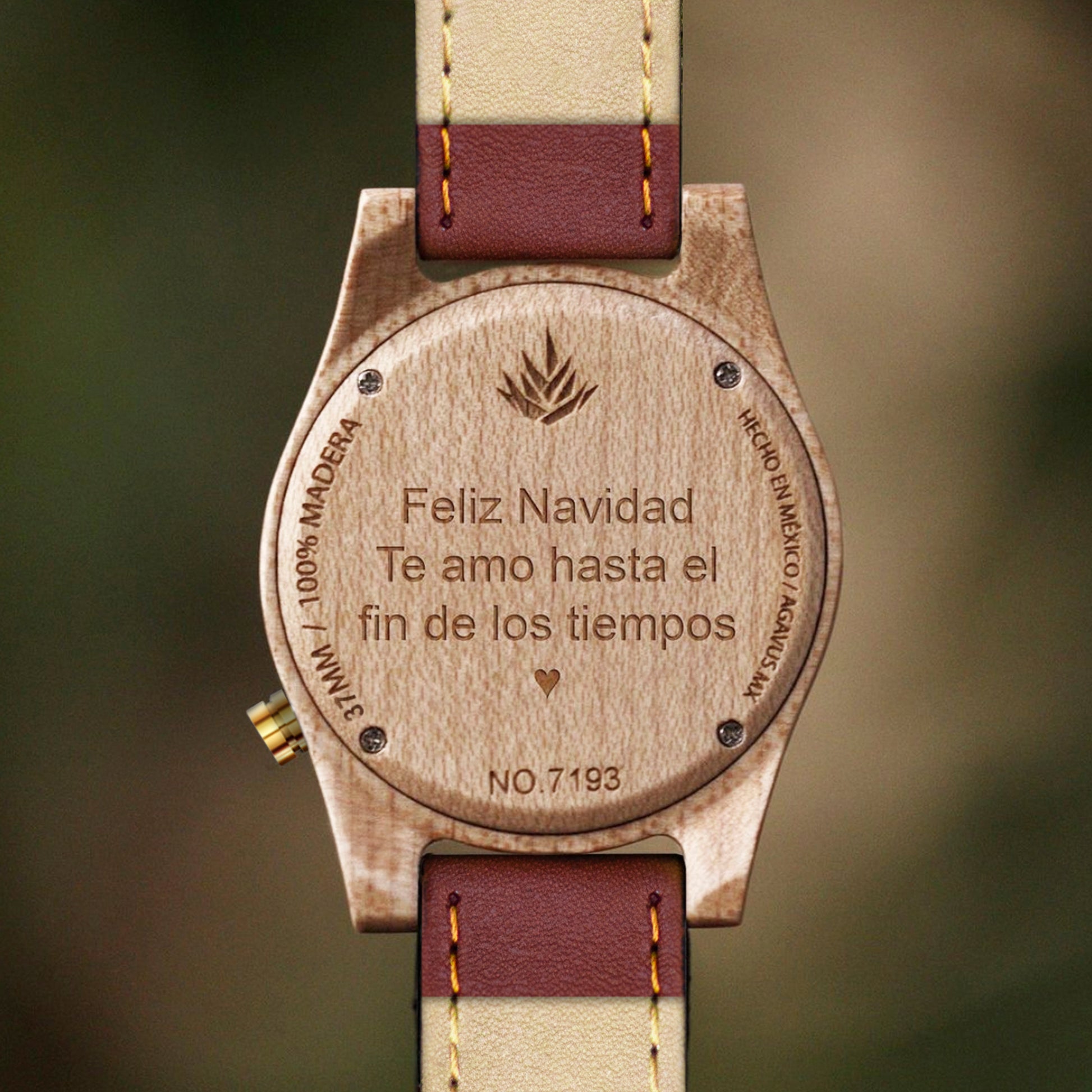 Todos nuestros productos incluyen su personalización. Graba un mensaje, iniciales, fechas, nombres, logotipos o hasta imágenes sin costo adicional. En tu reloj y estuche de madera.