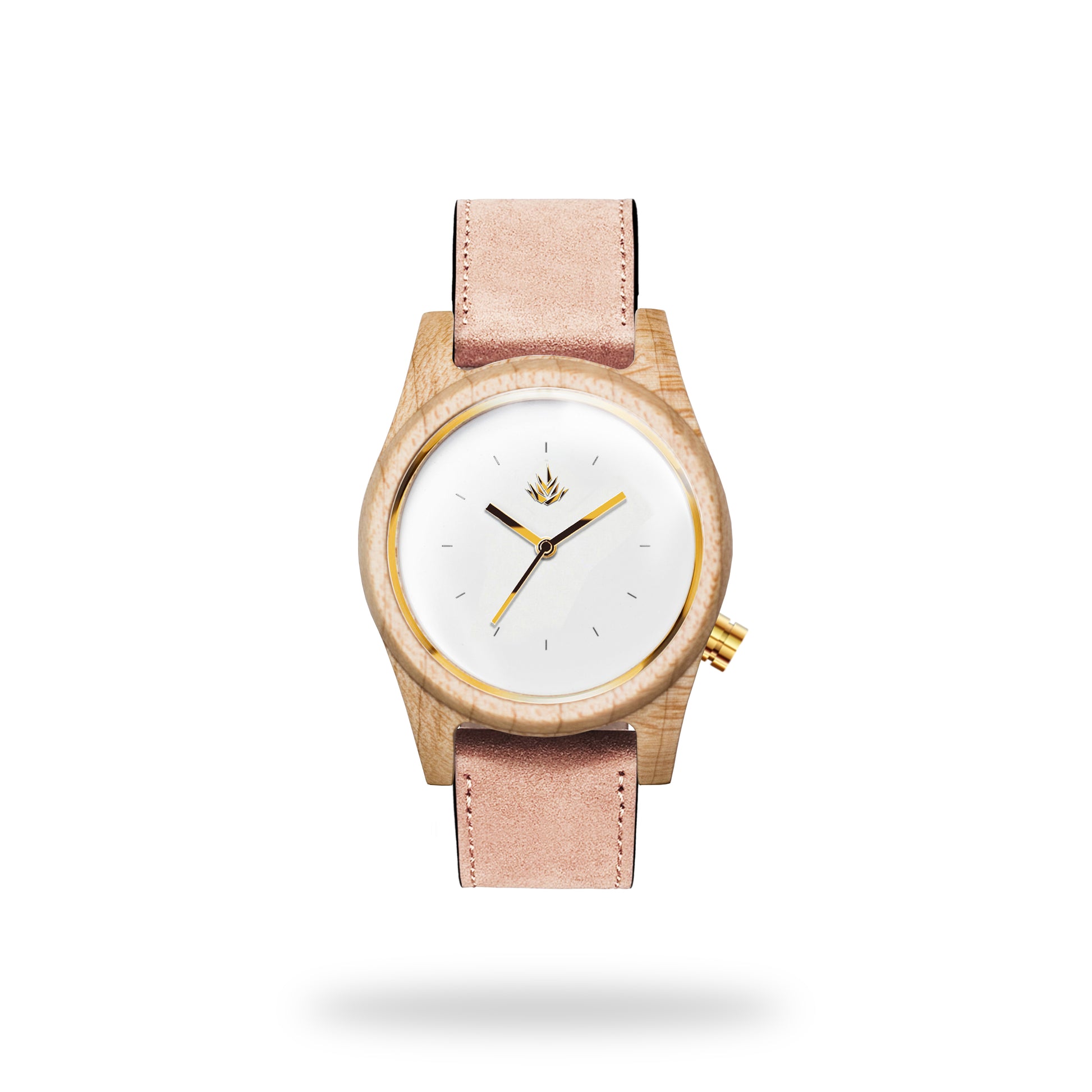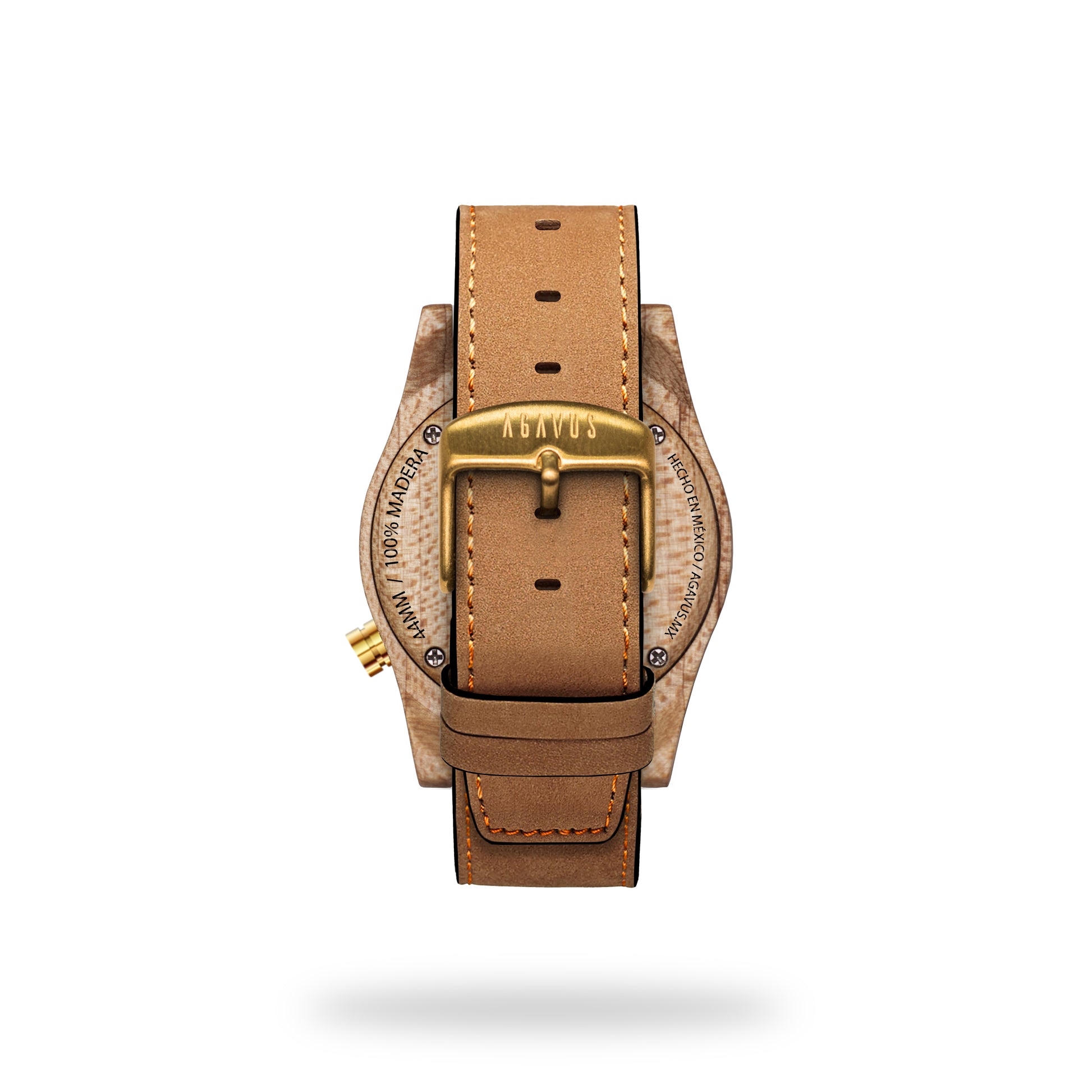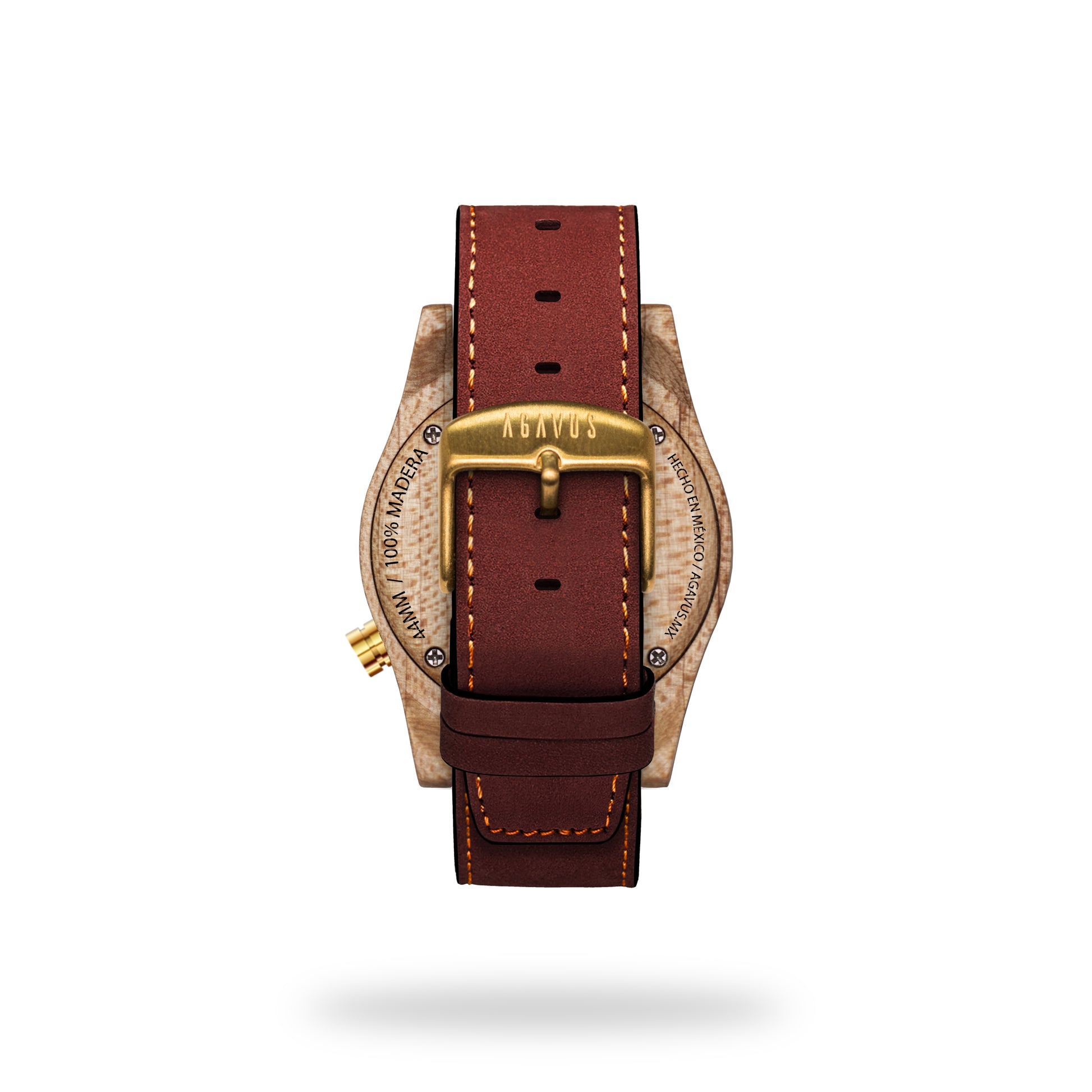 Nuestra línea agavia fué diseñada en 3d, maquinado en una pieza sólida de madera 100% natural con CNC router, y cuidadosamente lijado a mano. En madera de Maple del Pacífico, carátula en color blanco brillante, todos sus detalles en acero inoxidable color oro.