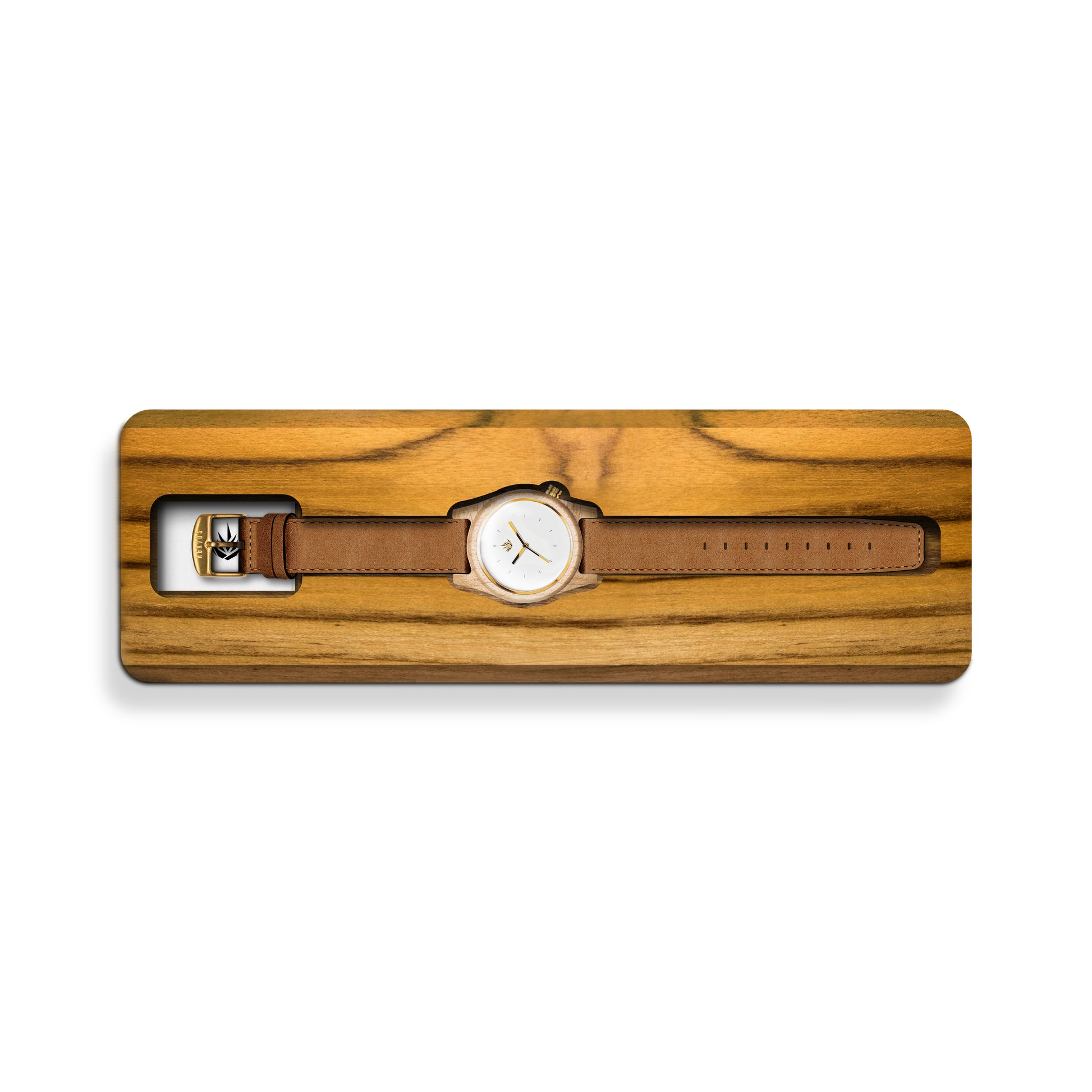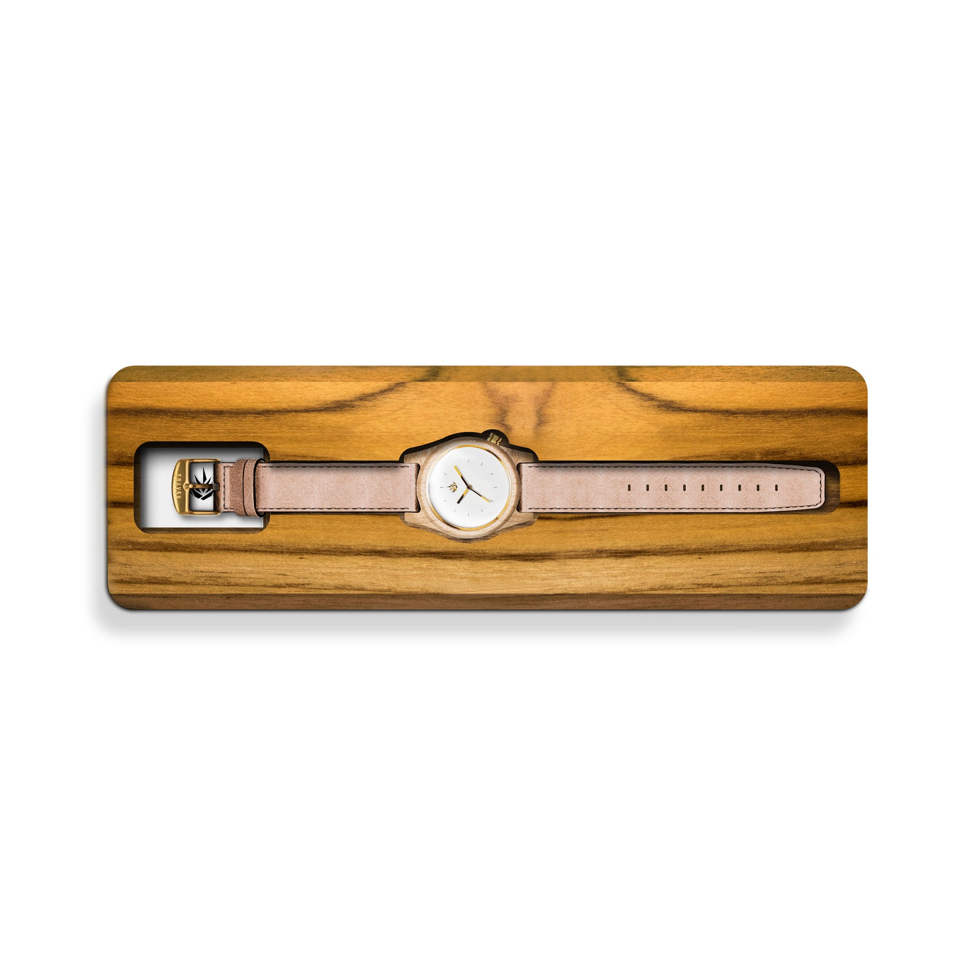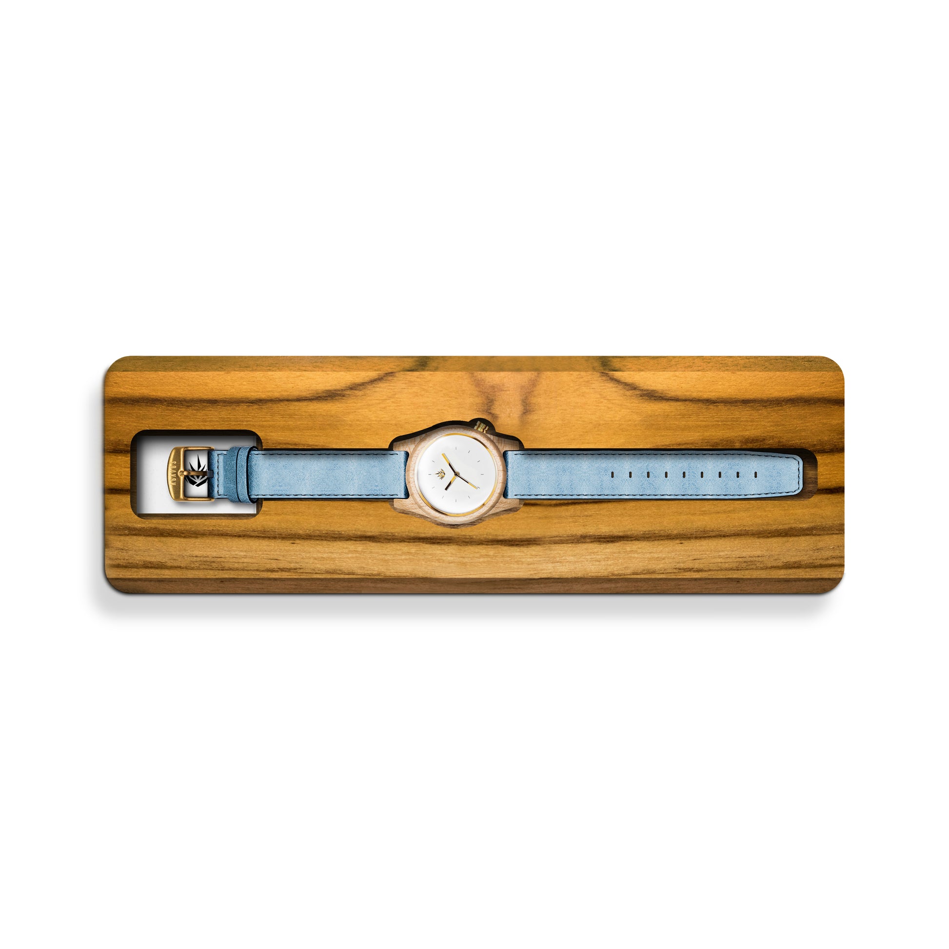 Nuestra línea agavia fué diseñada en 3d, maquinado en una pieza sólida de madera 100% natural con CNC router, y cuidadosamente lijado a mano. En madera de Maple del Pacífico, carátula en color blanco brillante, todos sus detalles en acero inoxidable color oro.