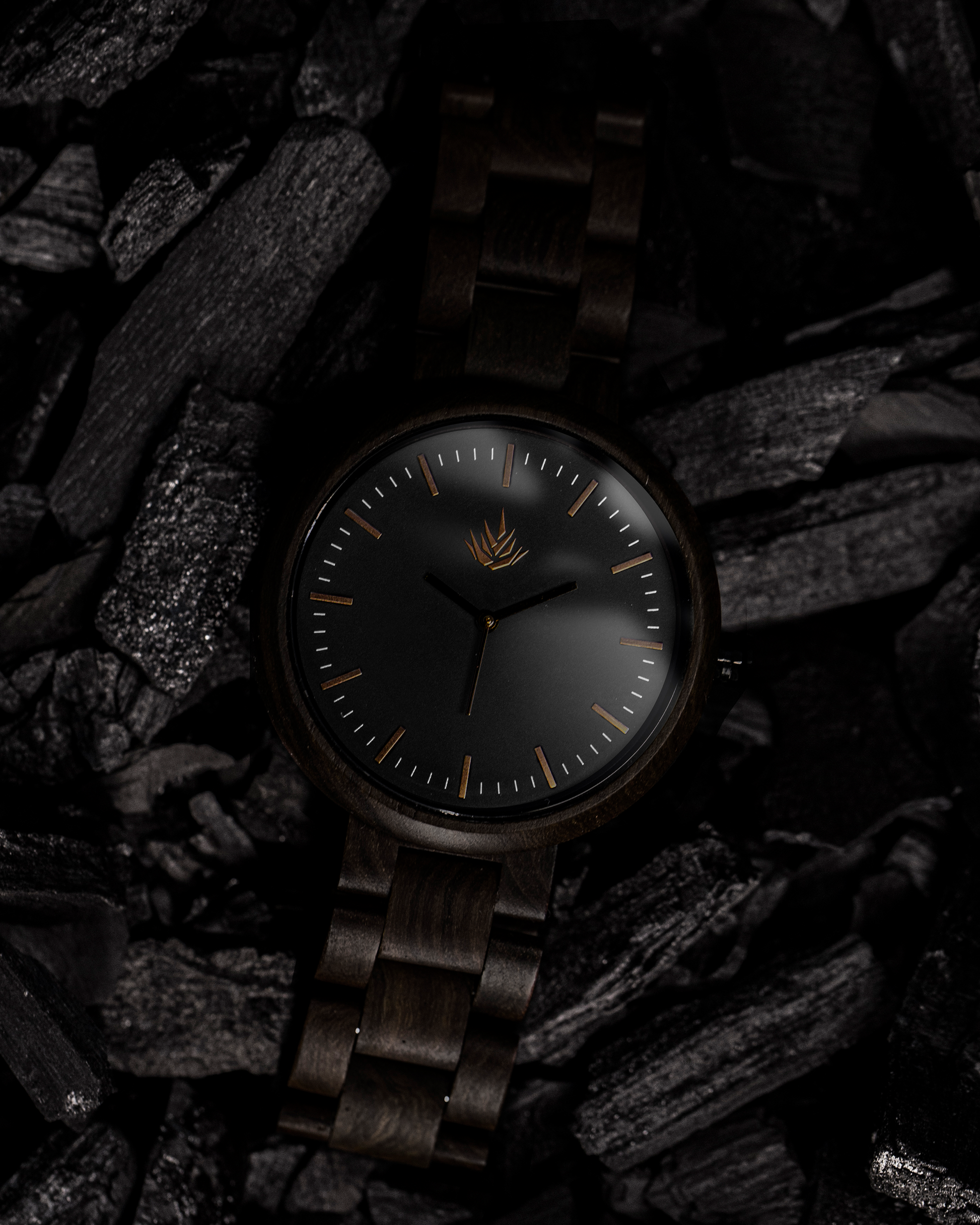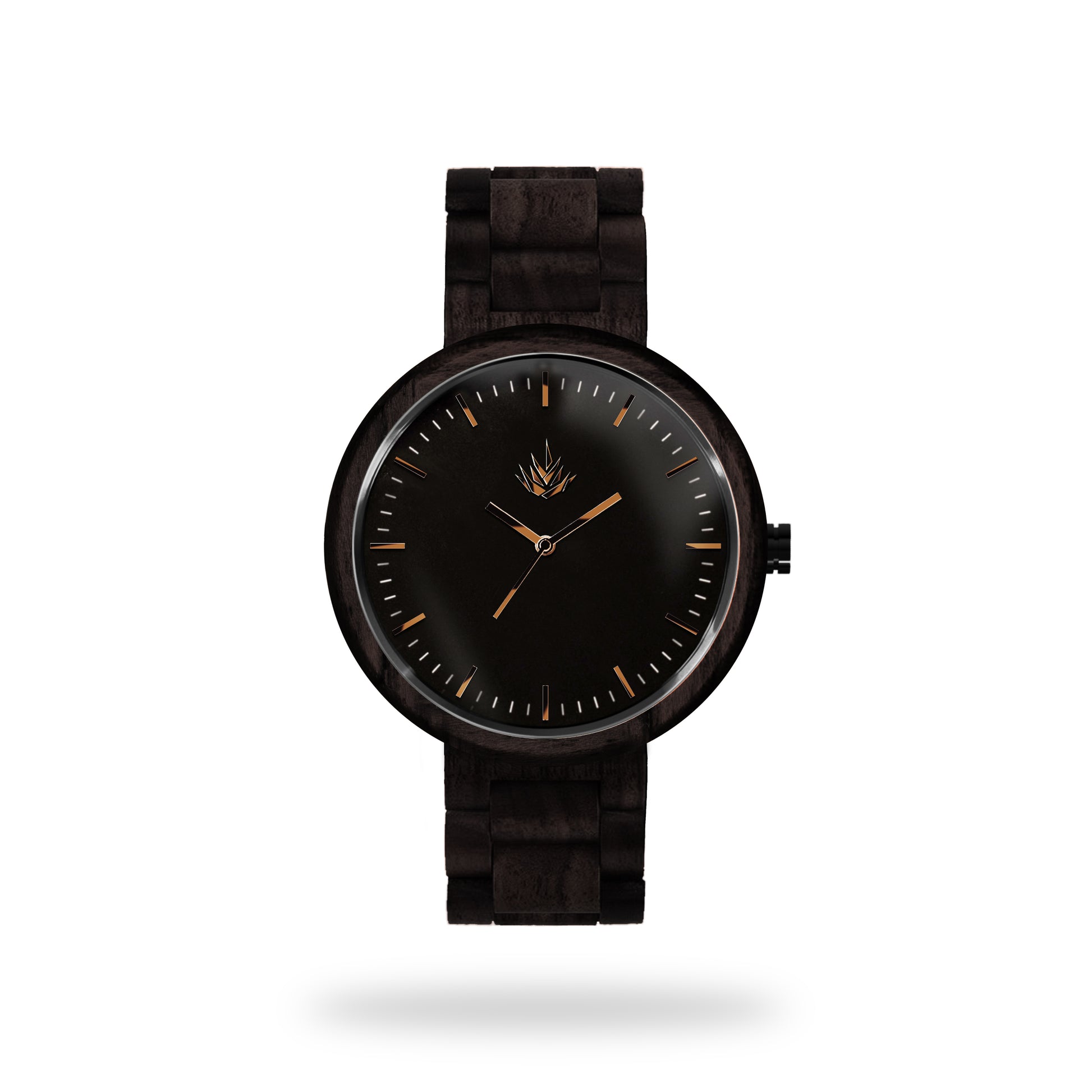 Nuestra línea Edición Especial fué diseñada en 3d, maquinado en una pieza sólida de madera 100% natural con CNC router, y cuidadosamente lijado a mano. En madera de Ébano, carátula en color negro mate, todos sus detalles en acero inoxidable color bronce.