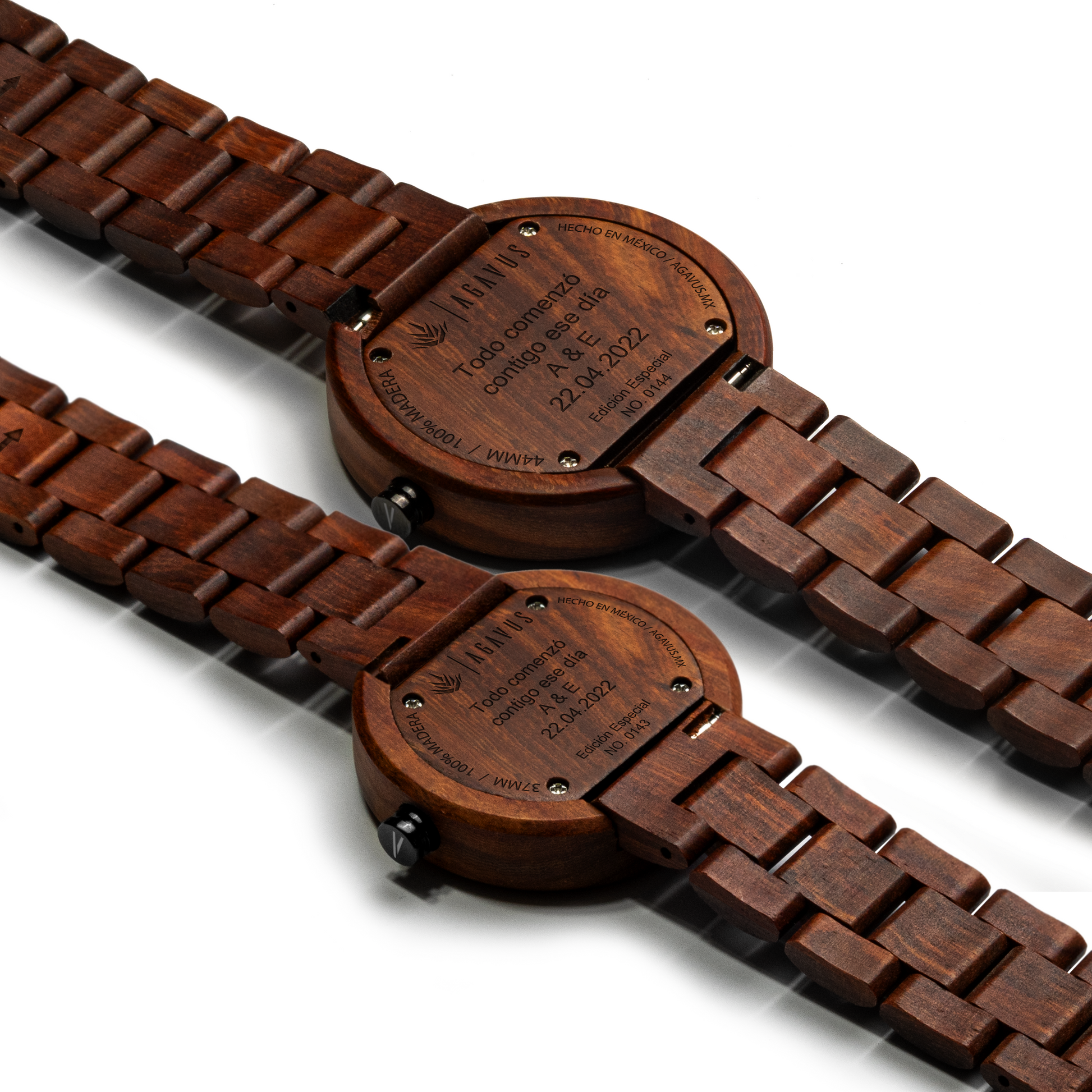 Pareja de Agavus | Edición Especial | 37mm y 44mm | Sándalo Rojo | Oro Rosa | Carátulas Blancas
