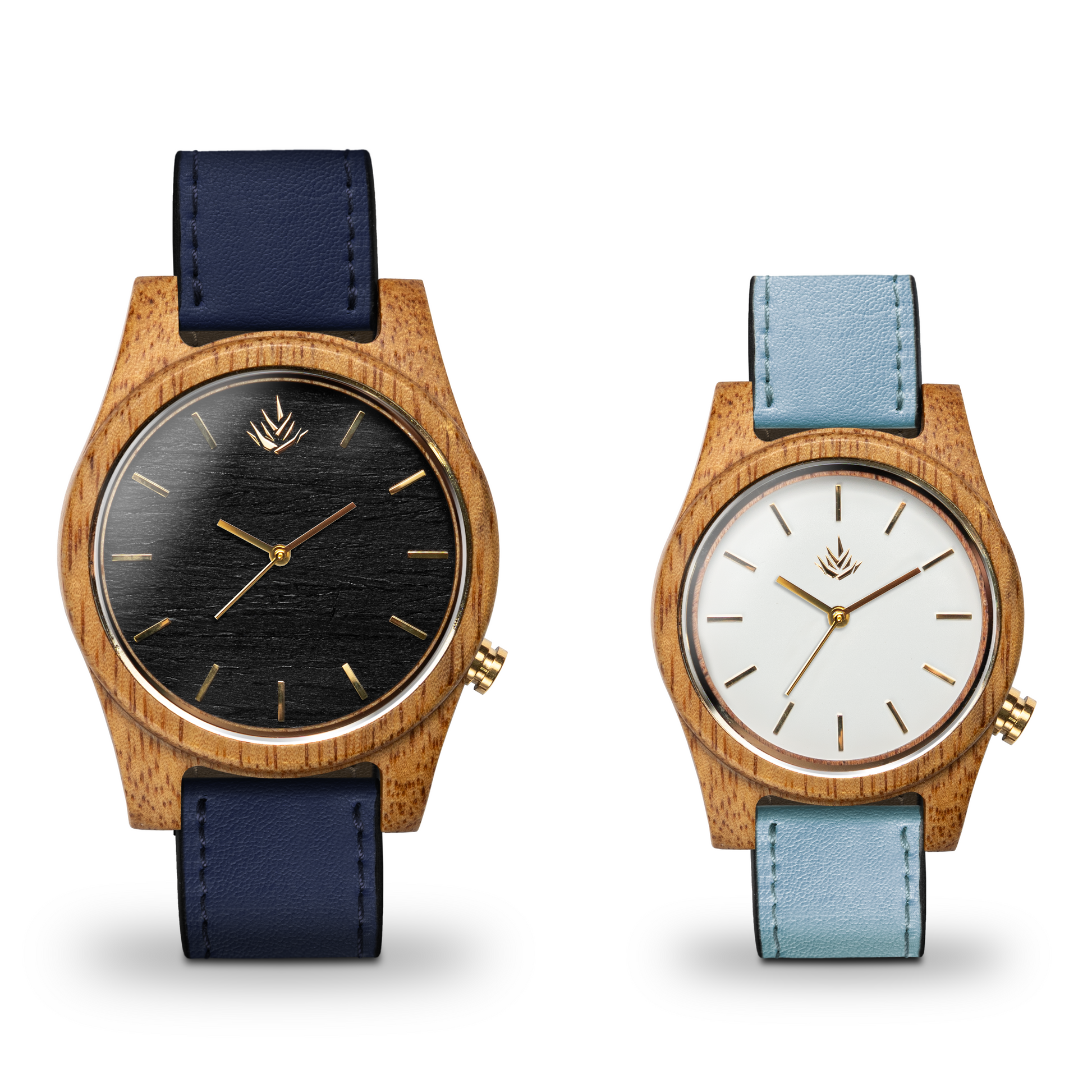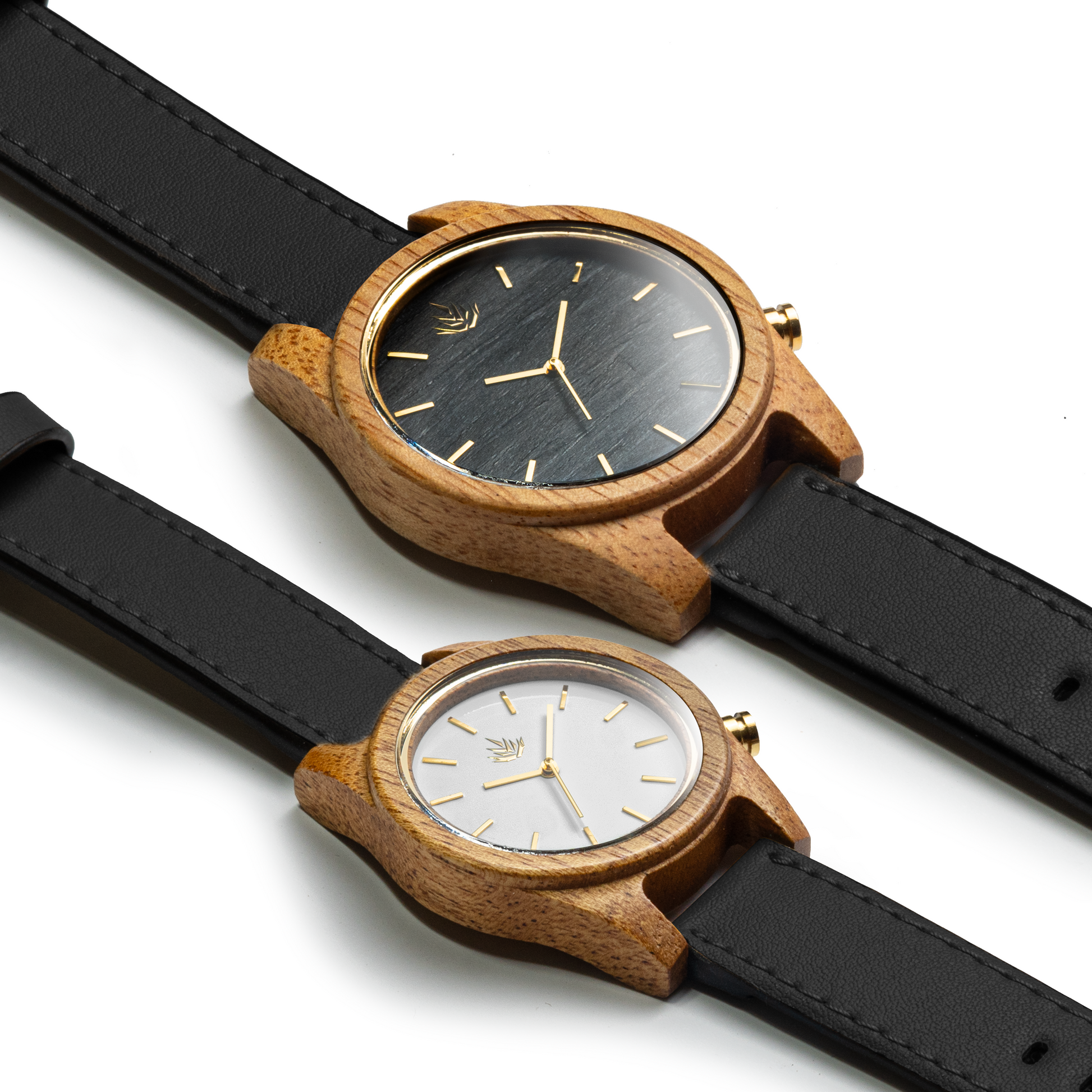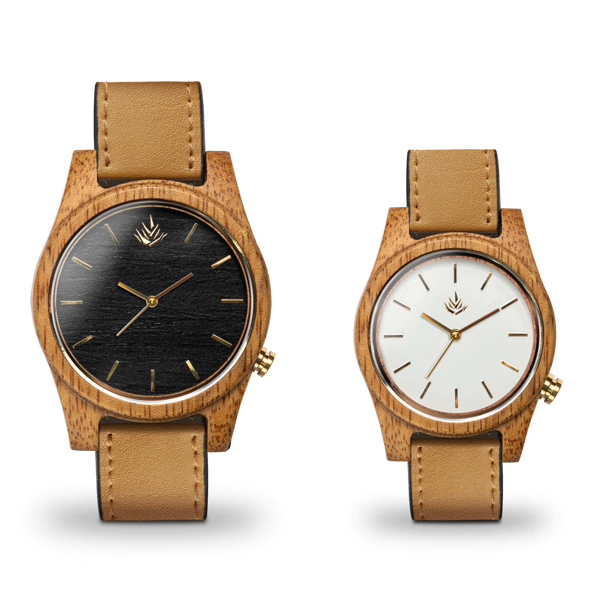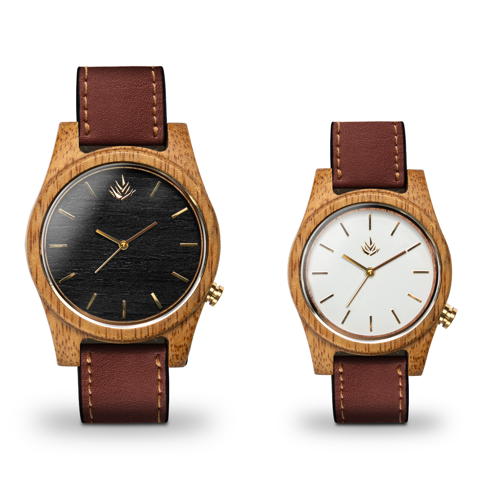 Pareja de Agavus | Línea Agavia | 37mm y 44mm | Caoba | Carátula Blanca y Ébano